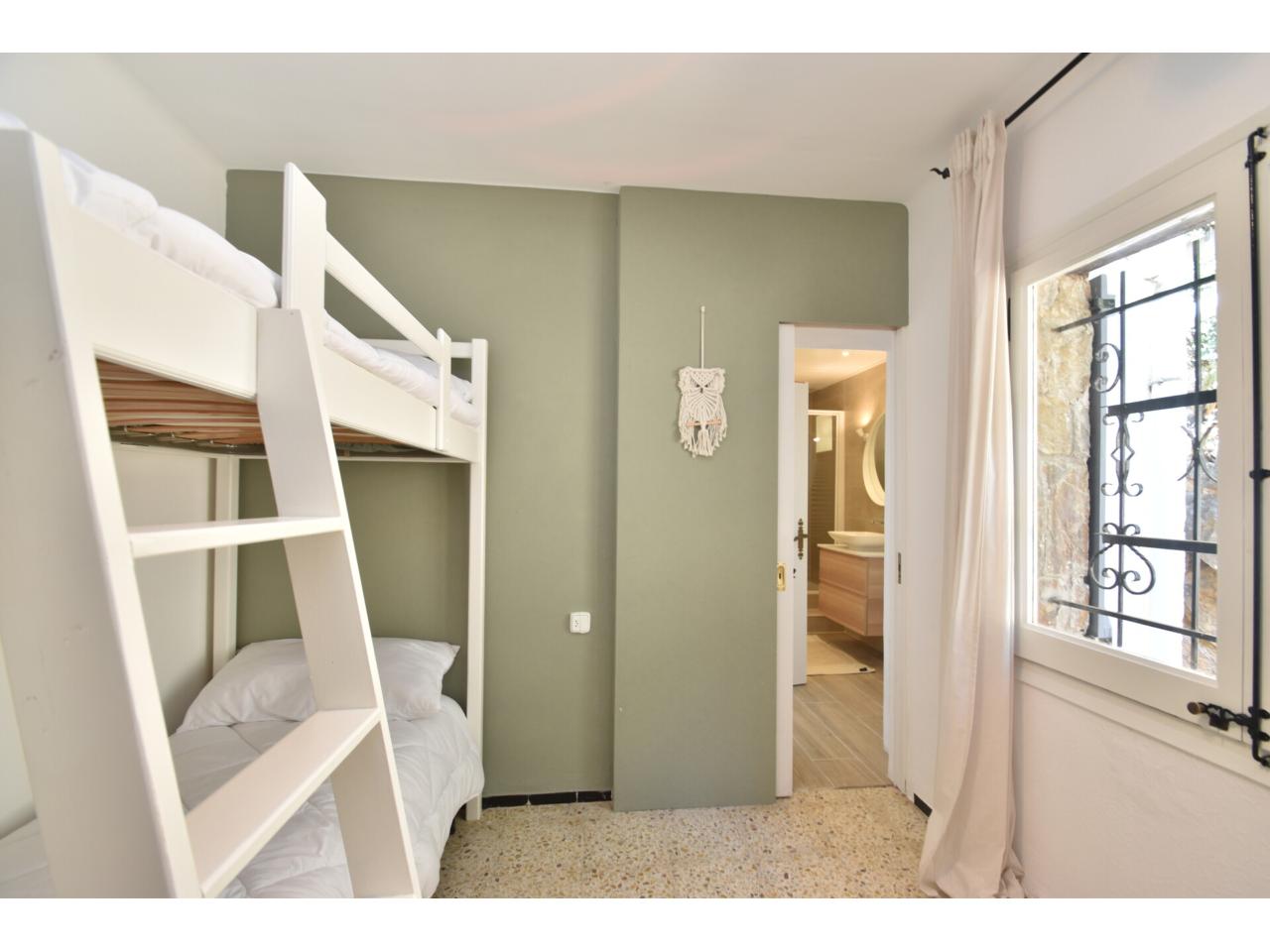 Al acceder a la vivienda encontramos un amplio salón / comedor con chimenea en un mismo ambiente. Acceso directo a la terraza con vistas al mar y a las montañas. Cocina independiente con salida al exterior y una habitación doble. A través de unas escaleras accedemos a la planta superior, donde encontramos 3 habitaciones dobles y dos baños.