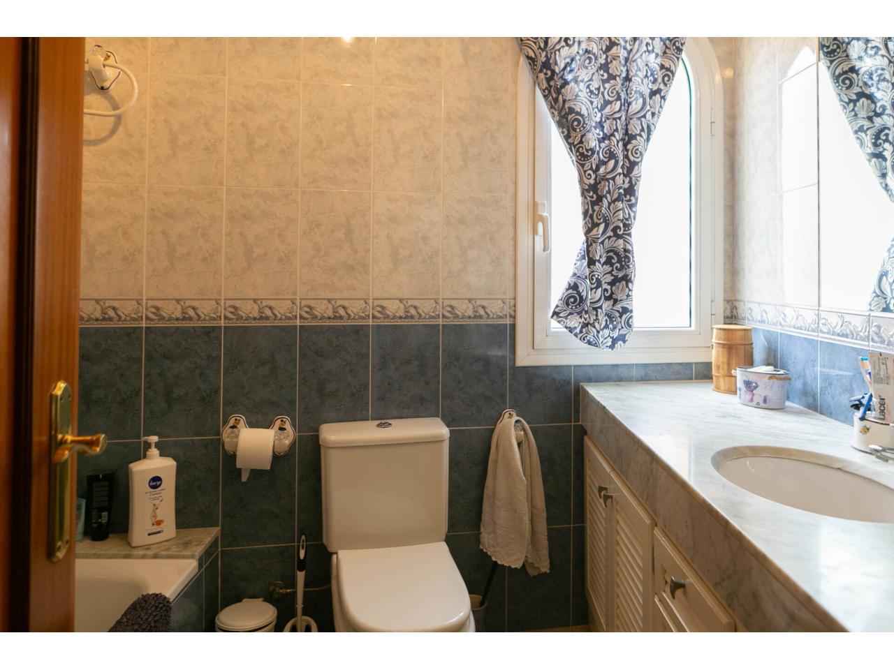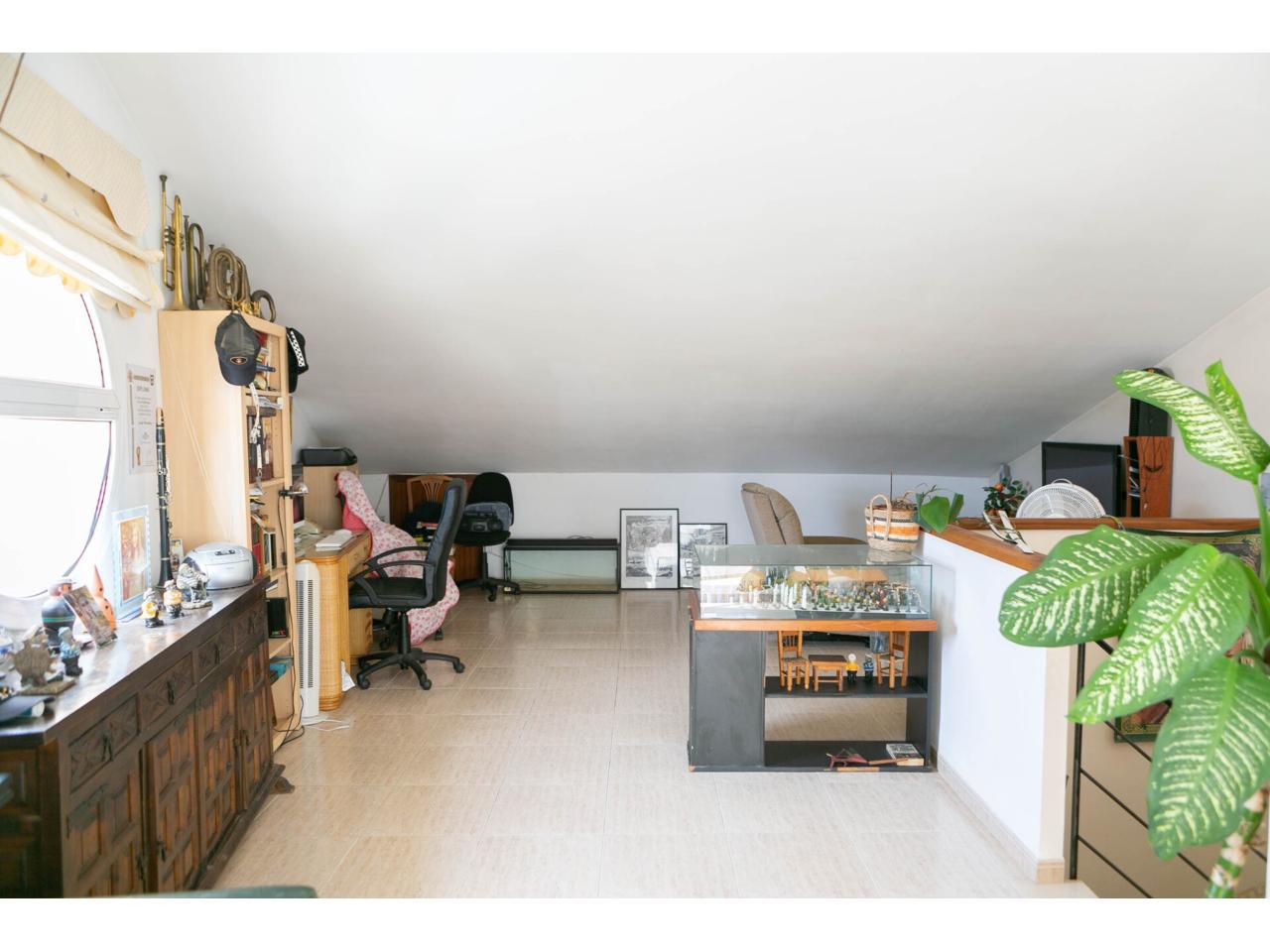 – DISTRIBUCIÓN – *Planta principal: Entrada, cocina independiente, aseo de cortesía, luminoso salón comedor con aire acondicionado y salida a terraza y acceso a pequeño jardín. *Primera planta: Dos habitaciones dobles con acceso a pequeña terraza, un cuarto de baño con bañera, una habitación doble en suite con vestidor y cuarto de baño con ducha. *Segunda planta: Gran estudio con muchas posibilidades y salida a pequeña terraza. *Planta garaje: Garaje cerrado para un coche, espacio para almacenamiento y cuarto de lavandería. Escaleras internas que comunican con la casa.