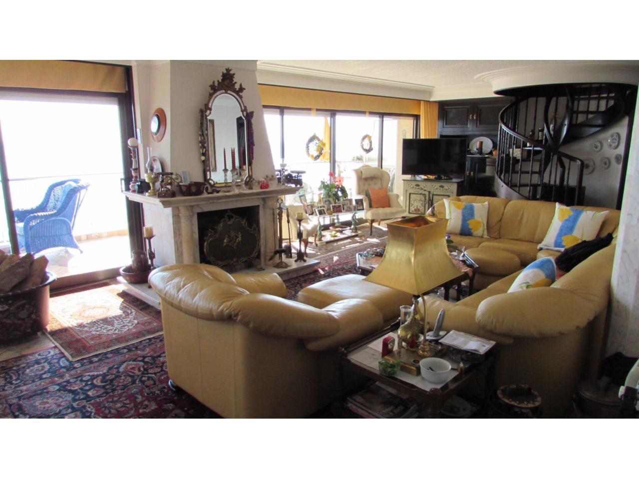 El piso ofrece un espacioso salón-comedor con chimenea y acceso directo a una magnífica terraza, además de una suite principal en la planta superior, actualmente habilitada como sauna y sala de almacenamiento con armarios empotrados. La cocina office está completamente equipada, y la propiedad dispone de cuatro dormitorios dobles, todos exteriores, dos baños completos y un aseo de cortesía.